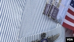 他还告诉我们一个有趣的故事,当年蒋介石答应给所有的美国飞行员发勋章,结果中国打起了内战,这事儿耽搁了下来。后来一个美国军官一直坚持不懈,要求国民党政府信守承诺,所以他在战争结束40年后得到了这枚勋章。